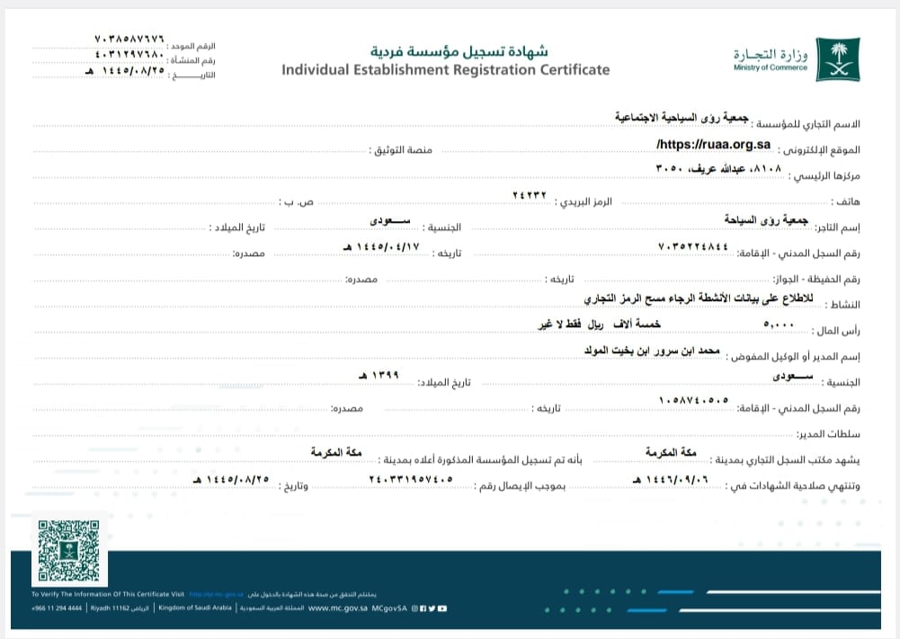 شهادة تسجيل الجمعية